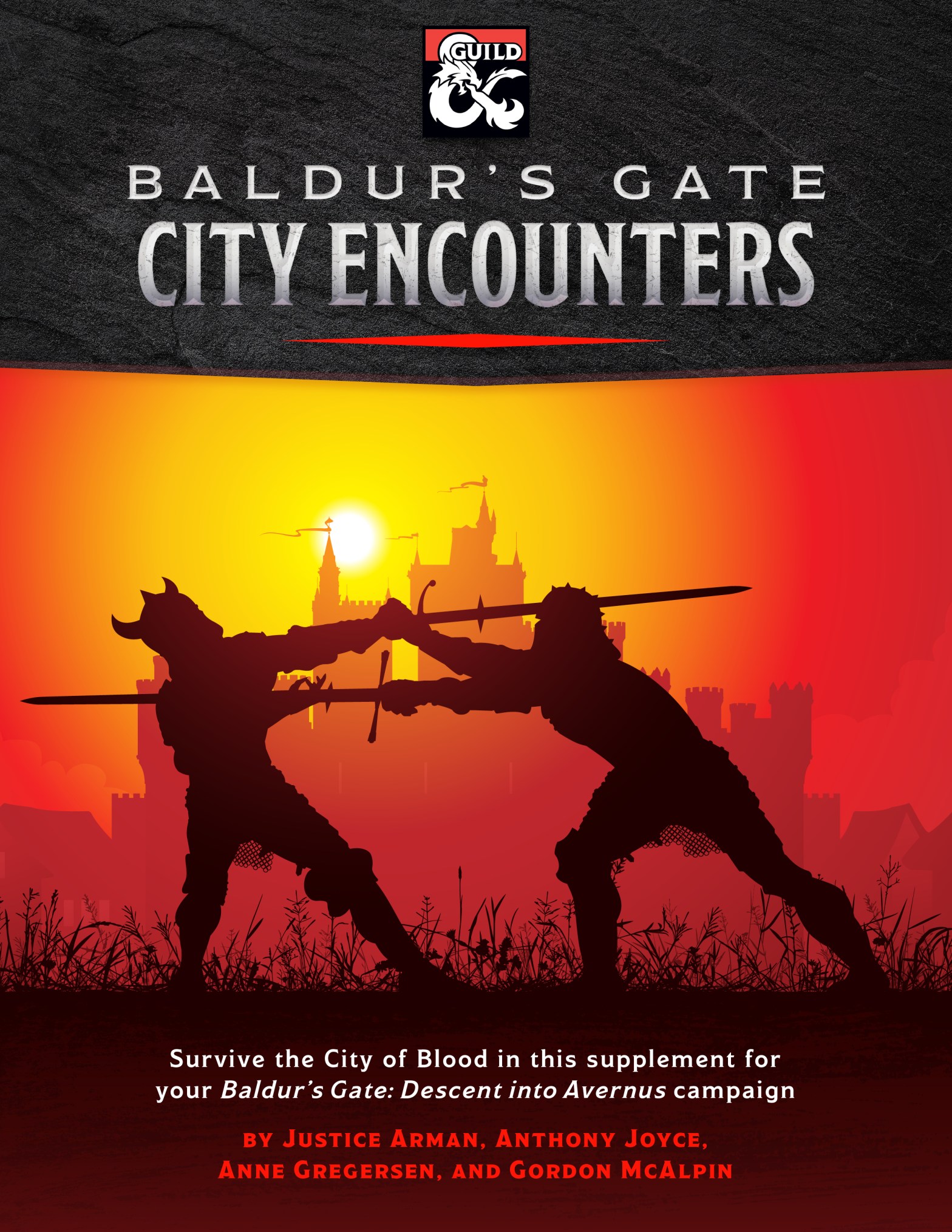 Baldur’s Gate: City Encounters is now available on the Dungeon Master’s Guild! Anthony Joyce and I co-led this project with amazing contributions from Anne Gregersen and Gordon McAlpin (who also did the fantastic graphic design). This supplement provides Dungeon Masters with forty short encounters to supplement their Baldur’s Gate: Descent into Avernus campaigns. These brief scenarios enliven the City of Blood and distinguish it from other settlements along the Sword Coast, such as Waterdeep or Daggerford.